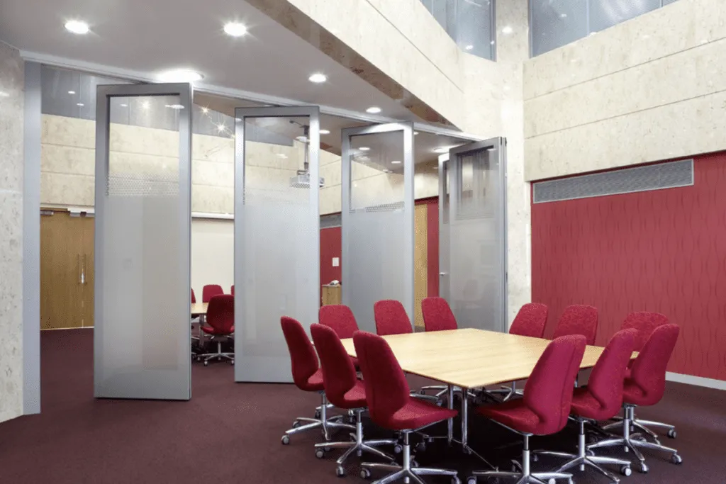 Movable glass partitions create privacy quickly by separating a large space into smaller areas. The MovareTM Movable Double Glazed Glass Partition system has an STC wall rating of 40dB to instantly deliver acoustic performance to areas when they need it. They can be operated manually or by remote control, so they offer an ease of use necessary for a fast-paced office environment.