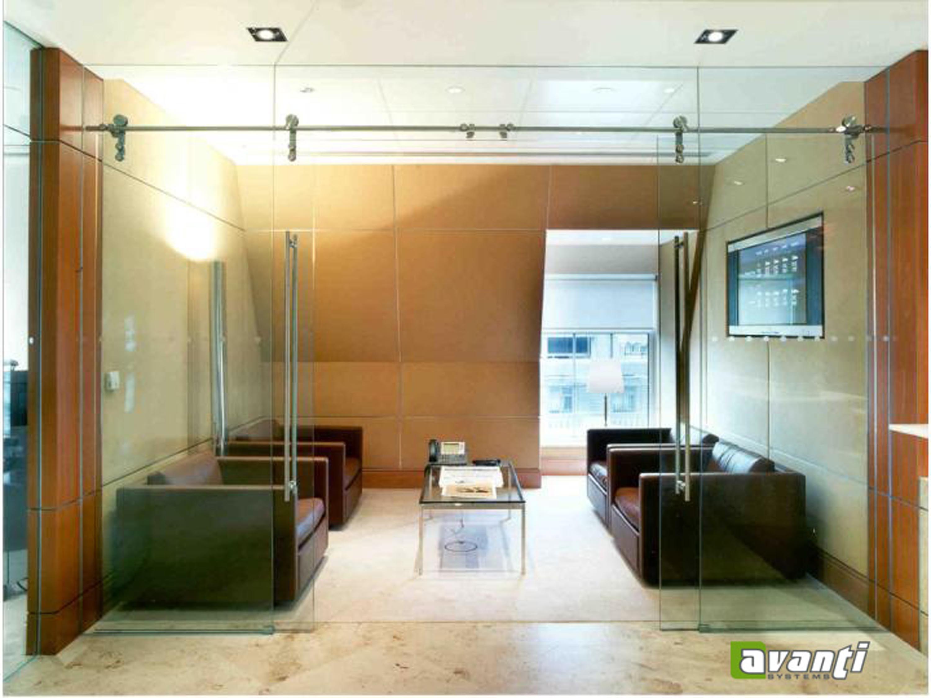 For quiet, open and close and instant privacy, Eclipse™ Sliding Glass Barn Doors were used to partition off areas that can be open to welcome clients and closed to maintain a quiet space for meetings.