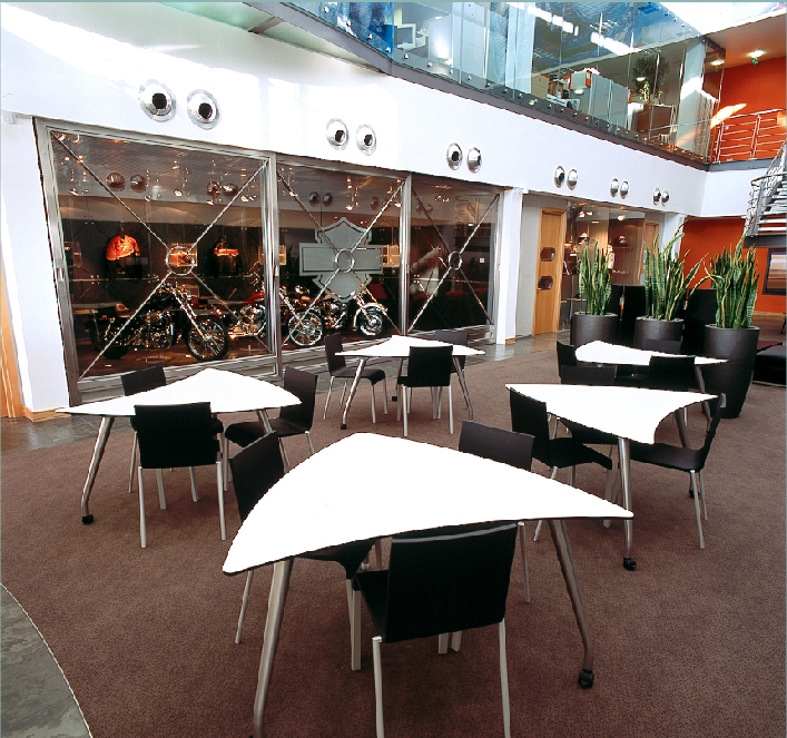 Using a variety of Avanti’s products customized to their specifications, we were able to create an office space and showroom combination that is unique and eye-catching while still being incredibly functional. When you walk into their offices, there’s no doubt that they belong to Harley-Davidson.