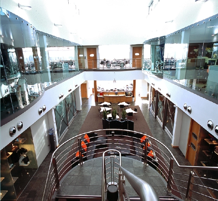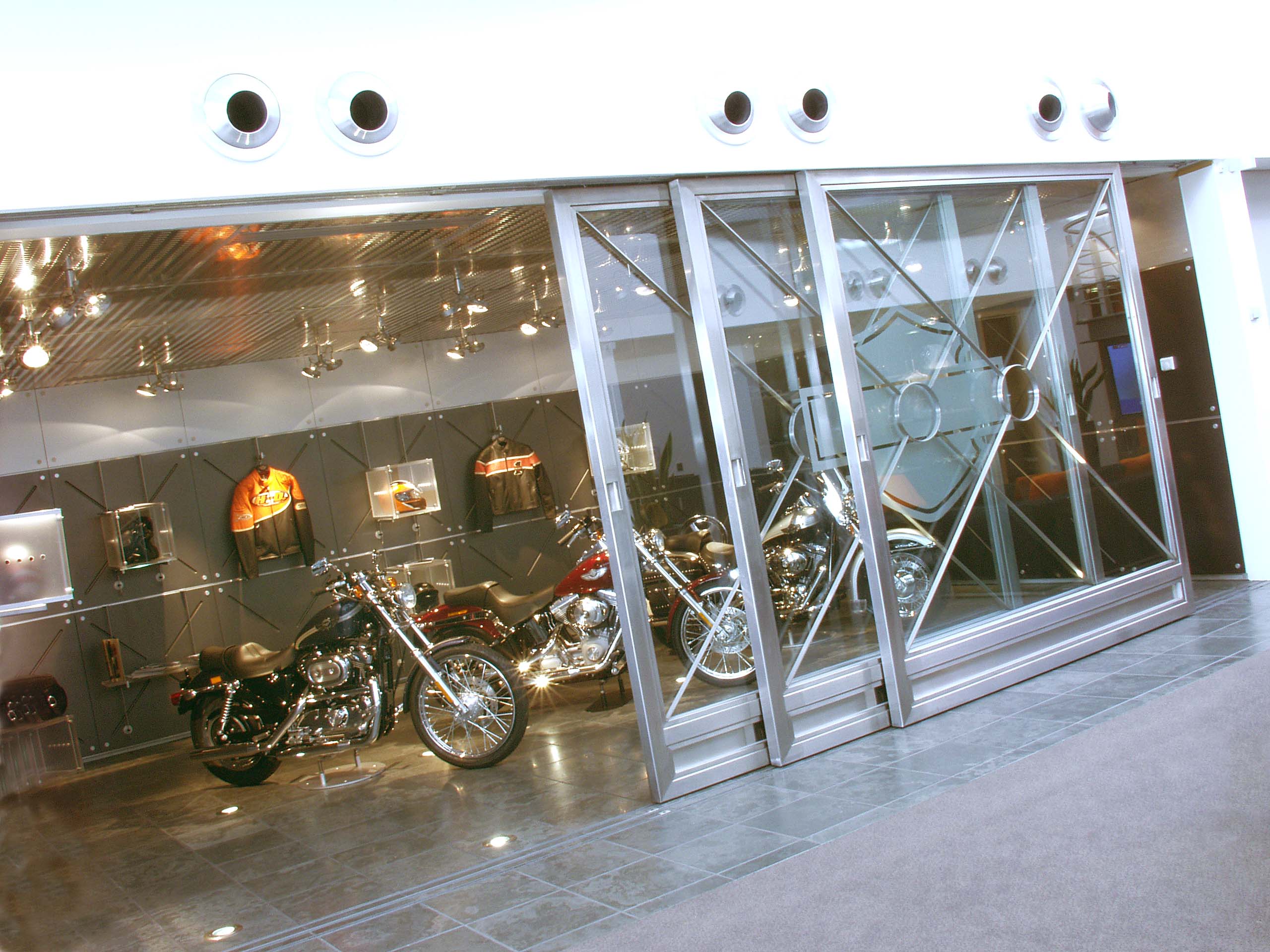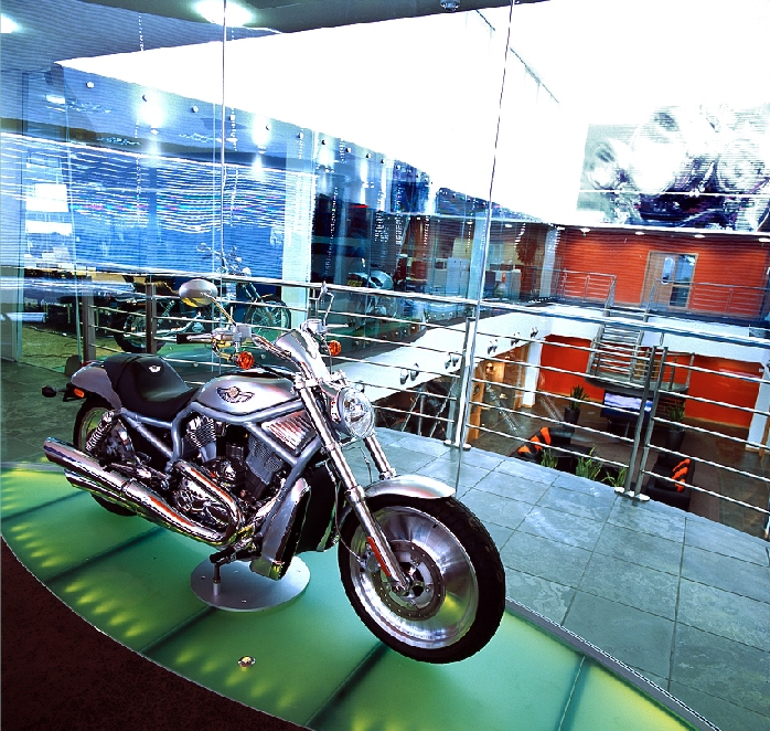 For the common area display room, the Movare™ Movable Glazed Partition System creates the flexibility to slide the walls to one side, welcoming employees and visitors to admire the Harley-Davidson products that are highlighted in the display.